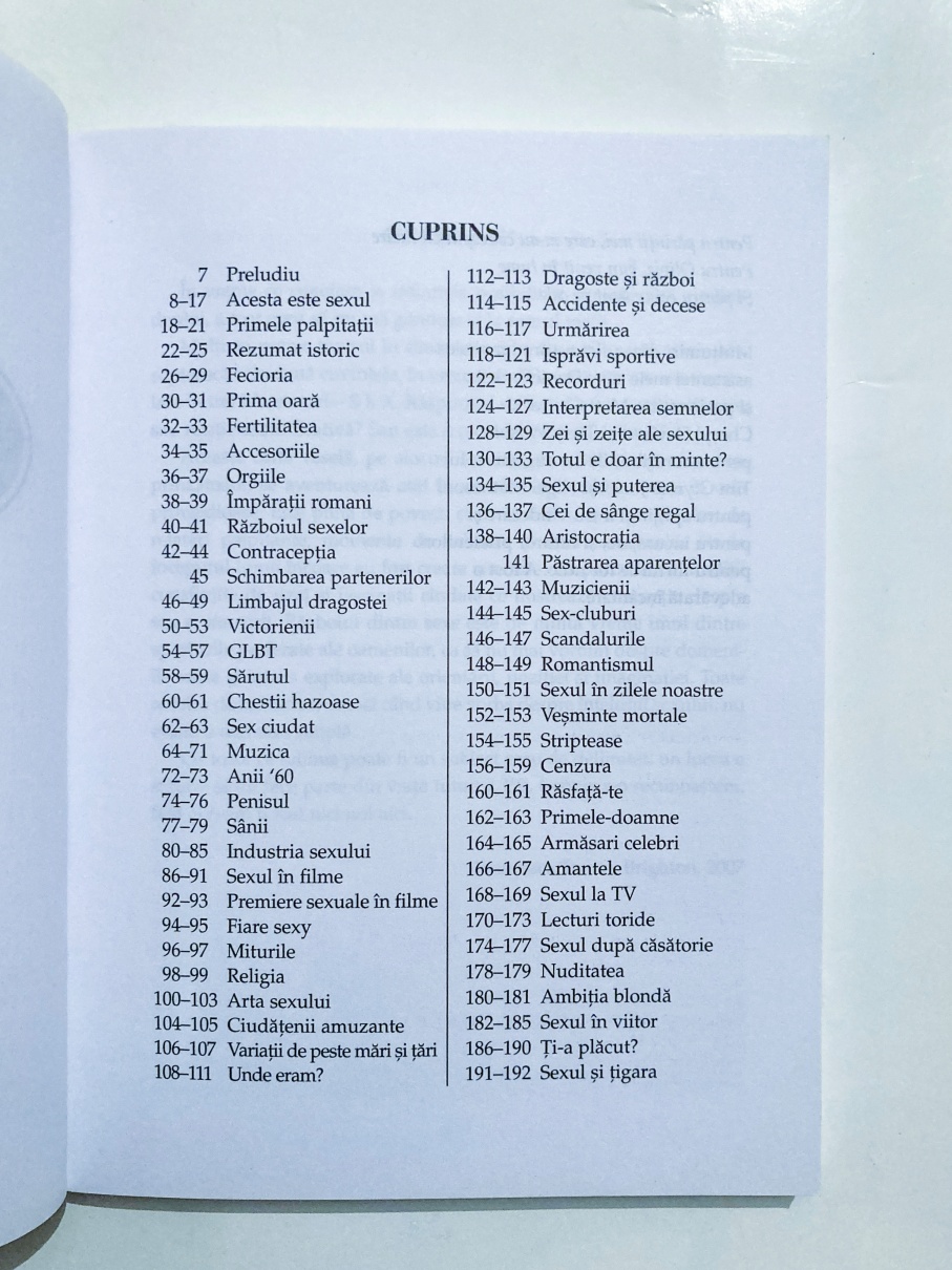 Ştiaţi că sexul arde 360 de calorii pe oră? Sau că, din punct de vedere biochimic, sexul nu e cu nimic diferit de consumarea câtorva porţii bune dintr-un de tort de ciocolată? Cu cine se culca de fapt Superman? Cum arăta viaţa amoroasă a împăraţilor romani?