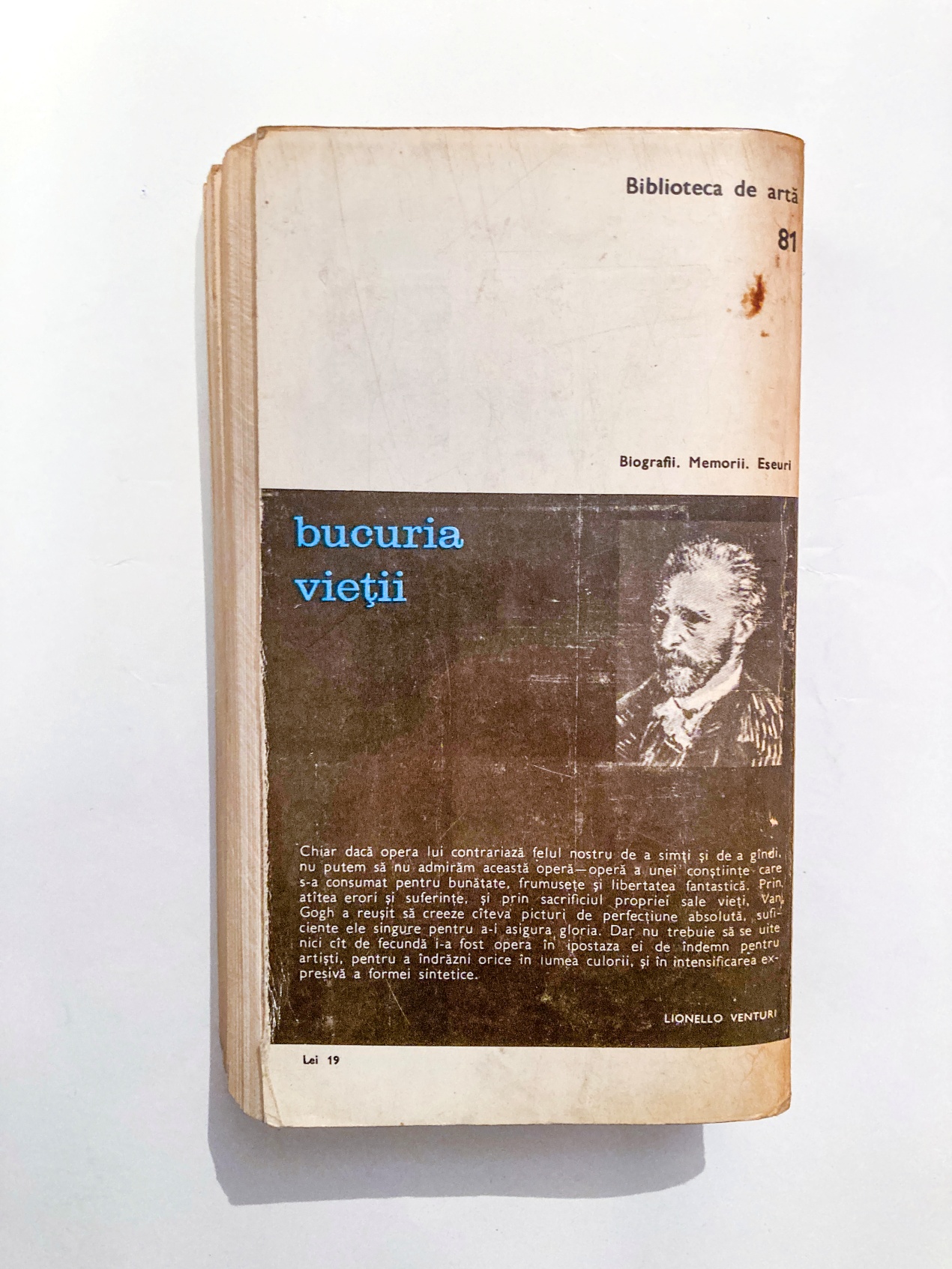 Romanul Bucuria vieții reia șaisprezece ani din viața lui Vincent Van Gogh, de când acesta era funcționar la Galeriile Goupil din Londra, până la sinuciderea sa, la 37 de ani. Urmărind peregrinările personajului principal, Irving Stone surprinde deopotrivă duritatea vieții minerilor din Borinage, entuziasmul și frământările grupului de pictori din care fac parte Gauguin, Toulouse-Lautrec, Cézanne, Seurat, Rousseau, dar și tablouri provinciale din Olanda, Belgia și Franța. Povestea artistului olandez lipsit de noroc în dragoste, care‑și caută calea împlinirii, rătăcind ani buni înainte de a se dedica picturii, este în egală măsură un pasionant roman al prieteniei, al renunțării și al luptei cu sine.
