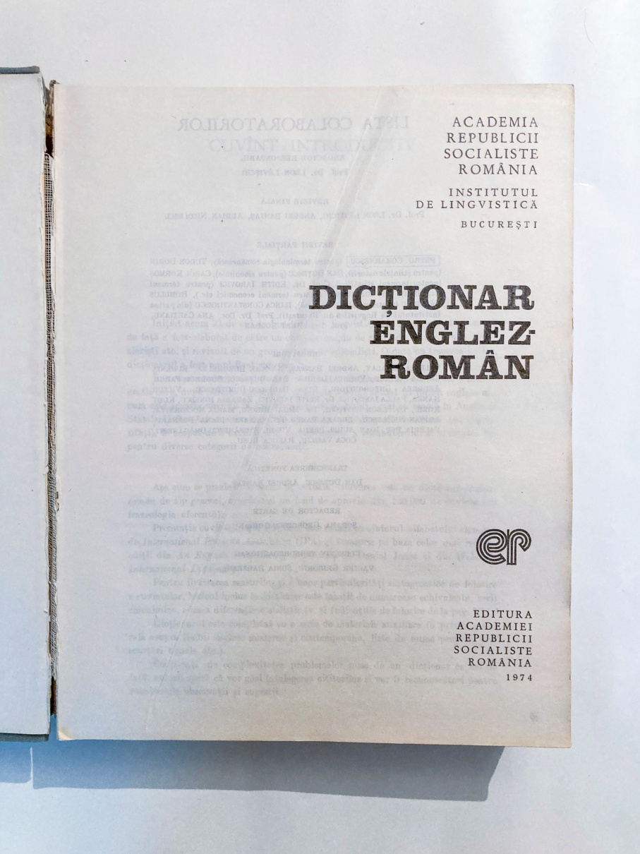 Dicționarul englez-român publicat în 1974 de Editura Academiei Republicii Socialiste România este una dintre cele mai vaste și respectate lucrări lexicografice bilingve din acea perioadă. Lucrarea a fost elaborată sub egida Institutului de Lingvistică din București, avându-i ca autori principali pe renumiții filologi Leon Levițchi și Andrei Bantaș. Dicționarul cuprinde aproximativ 120.000 de cuvinte și expresii, fiind o resursă academică de referință pentru terminologia vremii.