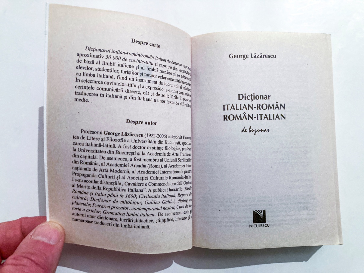 Cu aproximativ 30 000 de cuvinte și expresii din fondul lexical principal al limbilor italiană și română, “prinzând” însă și neologisme și expresii familiare din limba italiană, cu incidență frecventă în limbajul cotidian, ca și unele selectate din diverse domenii de specialitate (anatomie, biologie, botanică, chimie, comerț, drept, economie, geografie, jurnalism, politică, tehnică etc.), cât să “facă doldora buzunarul de limba italiană” al fiecărui începător, dicționarul dublu conceput de George Lăzărescu reprezintă o lucrare lexicografică de bază, acoperind chiar ceva mai mult decât “minimumul necesar” în materie de cunoștințe de limba italiană. Instrument de lucru util și eficient în “aplicațiile de dificultate medie”, completat în secțiunea de mijloc de două anexe (“noțiuni de fonetică și de gramatică română”, respectiv o “selecție paremiologică” din cele două limbi), dicționarul deschide perspective temeinice în aprofundarea studiului acestei limbi.