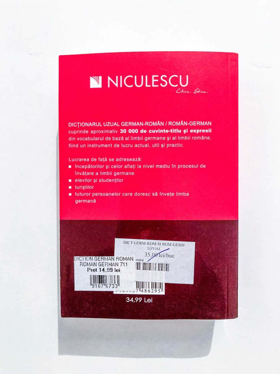 Dicţionarul uzual german-român/român-german cuprinde aproximativ 30 000 de cuvinte-titlu şi expresii din vocabularul de bază al limbii germane şi al limbii române, fiind un instrument de lucru actual, util şi practic. Lucrarea de faţă se adresează: