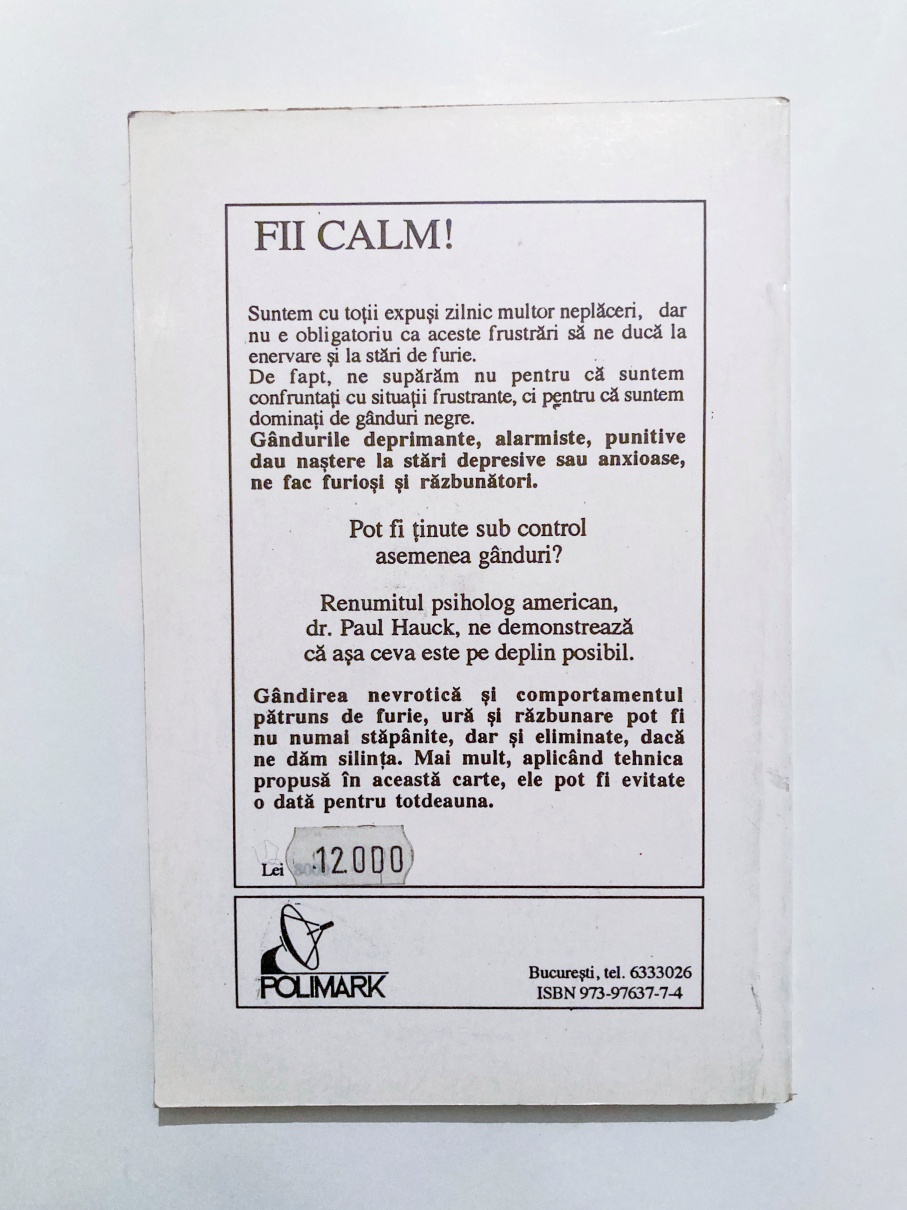 Gândirea nevrotică și comportamentul pătruns de furie, ură și răzbunare pot fi nu numai stăpânite, dar și eliminate, dacă ne dăm silința. Mai mult, aplicând tehnica propusă în această carte, ele pot fi evitate o dată pentru totdeauna.
