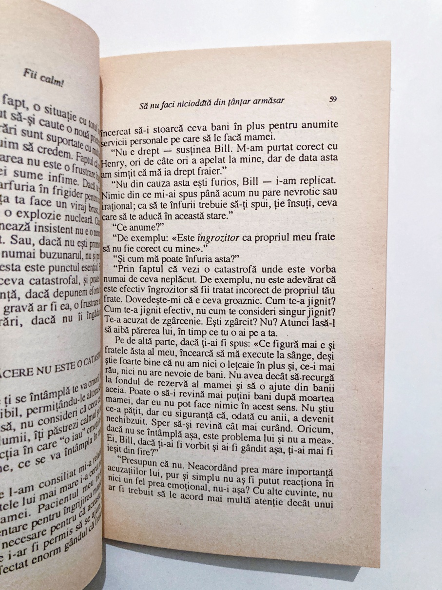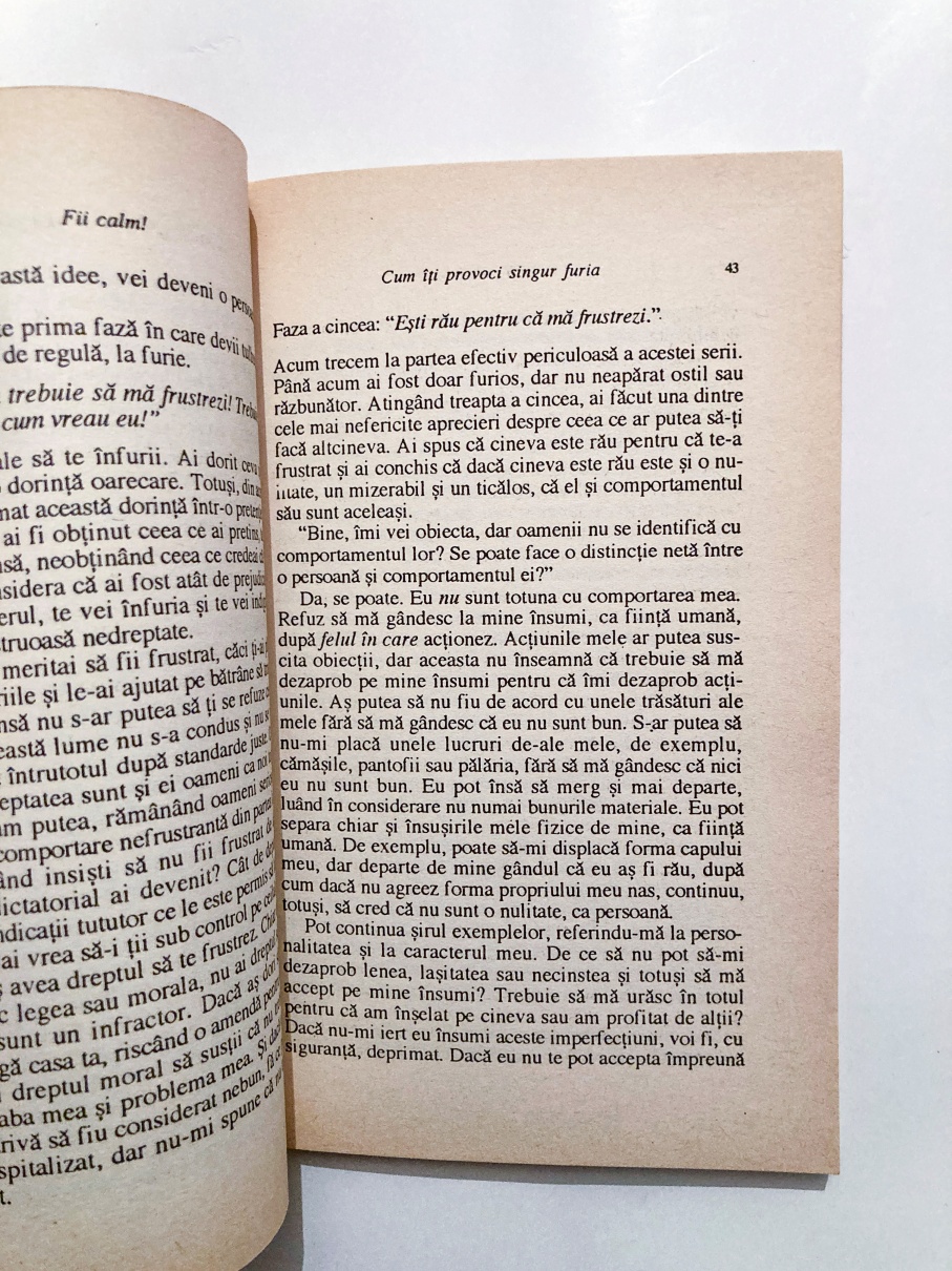 Suntem cu toții expuși zilnic multor neplăceri, dar nu e obligatoriu ca aceste frustrări să ne ducă la enervare și la stări de furie. De fapt, ne supărăm nu pentru că suntem confruntați cu situații frustrante, ci pentru că suntem dominați de gânduri negre. Gândurile deprimante, alarmiste, punitive dau naștere la stări depresive sau anxioase, ne fac furioși și răzbunători.