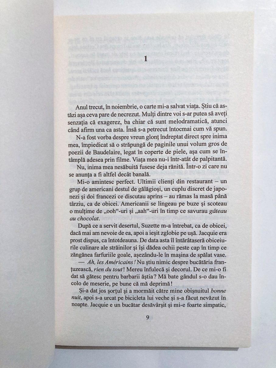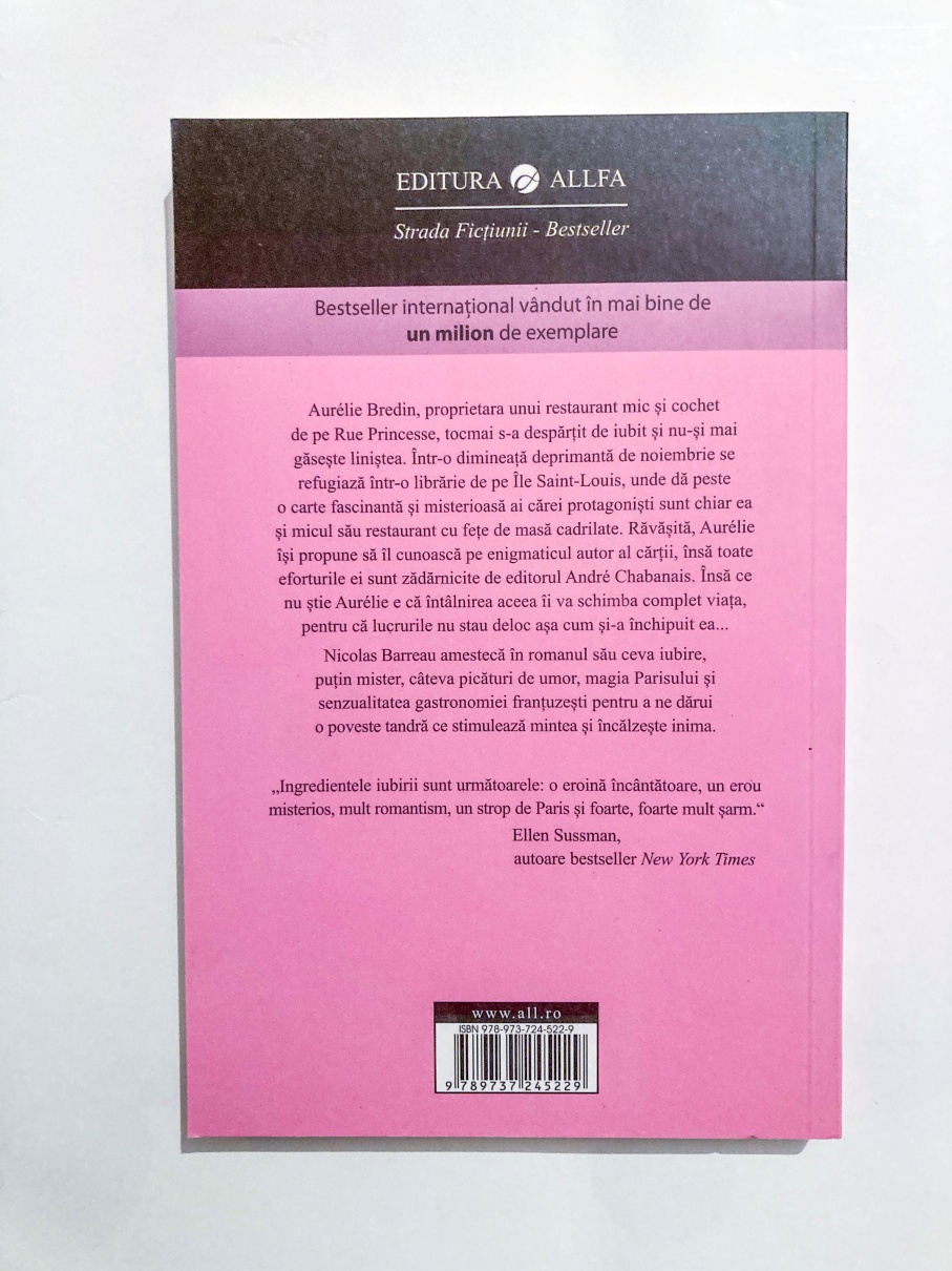 Cu o scriitură proaspătă, ușoară și plină de pasiune, Nicolas Barreau amestecă în volumul său ceva iubire, puțin mister, câteva picături de umor, magia Parisului și senzualitatea gastronomiei franțuzești pentru a ne dărui o poveste tandră ce stimulează mintea și încălzește inima.