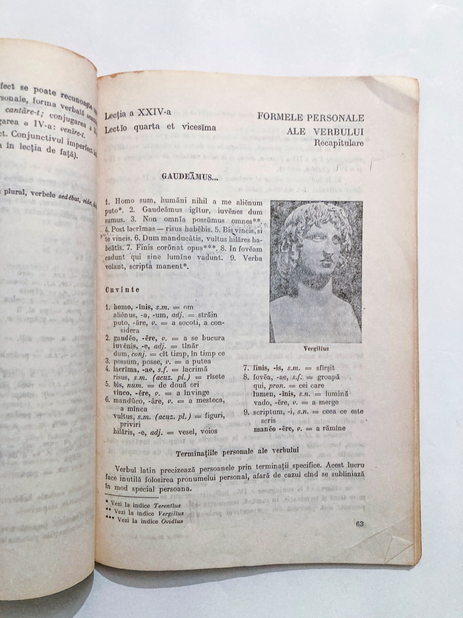 Prezentul manual introduce o nouă concepție de structură și predare a limbii latine. Ca atare se are în vedere o permanentă comparație cu limba maternă pornind de la elementele comune limbii române cu latina, indicând treptat deosebirile și renunțând la particularitățile de amănunt.
