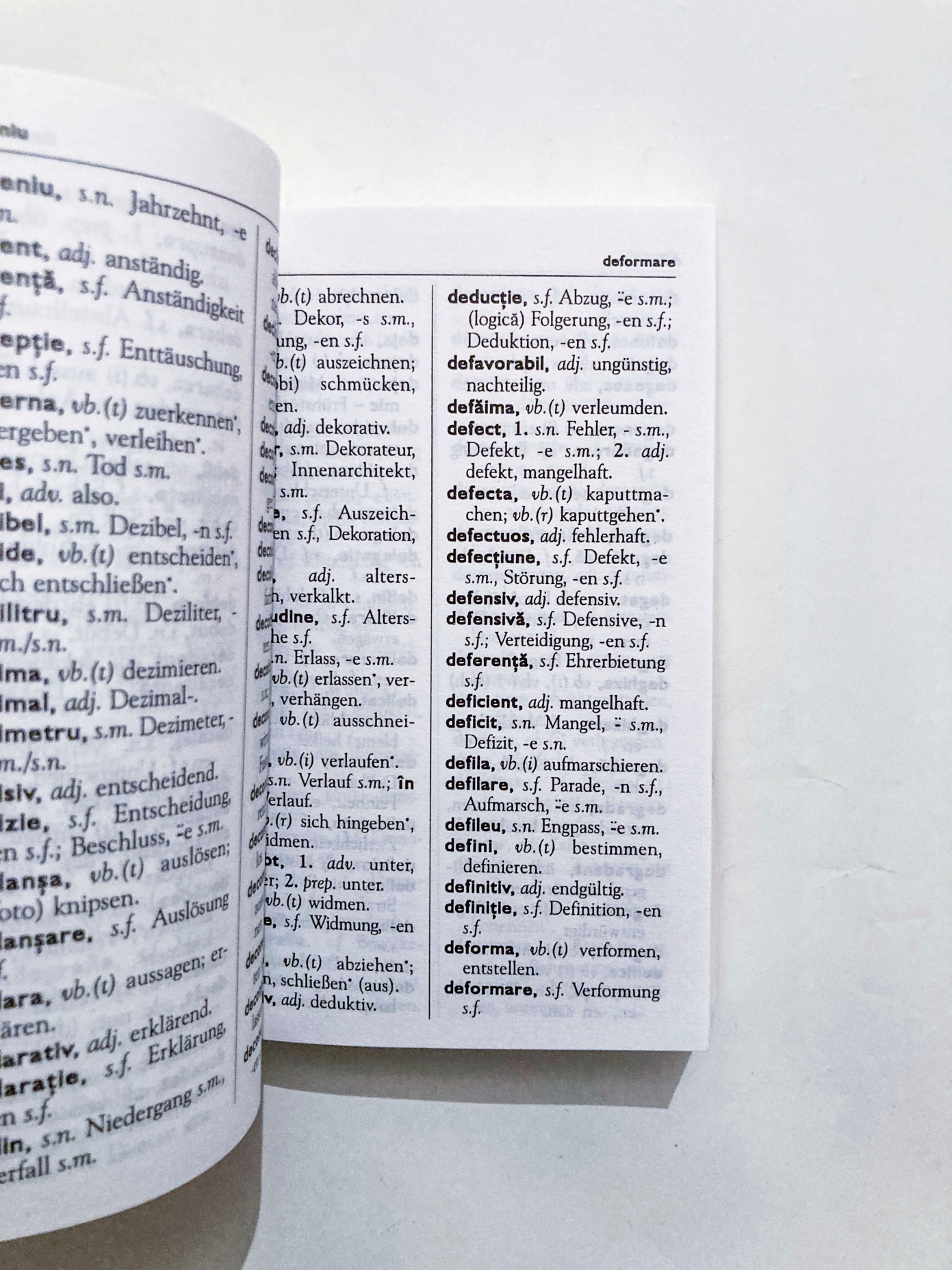 Dicționarul de față se adresează celor care studiază limba germană și, în egală măsură, vorbitorilor nativi ai acestei limbi, aflați în situația de a învăța și de a folosi limba română. Având dimensiunile și concepția unui dicționar școlar, lucrarea conține fondul principal lexical, precum și acele cuvinte tehnice a căror frecvență în limbă îndreptățește prezența lor într-un dicționar cu publicul țintă amintit.