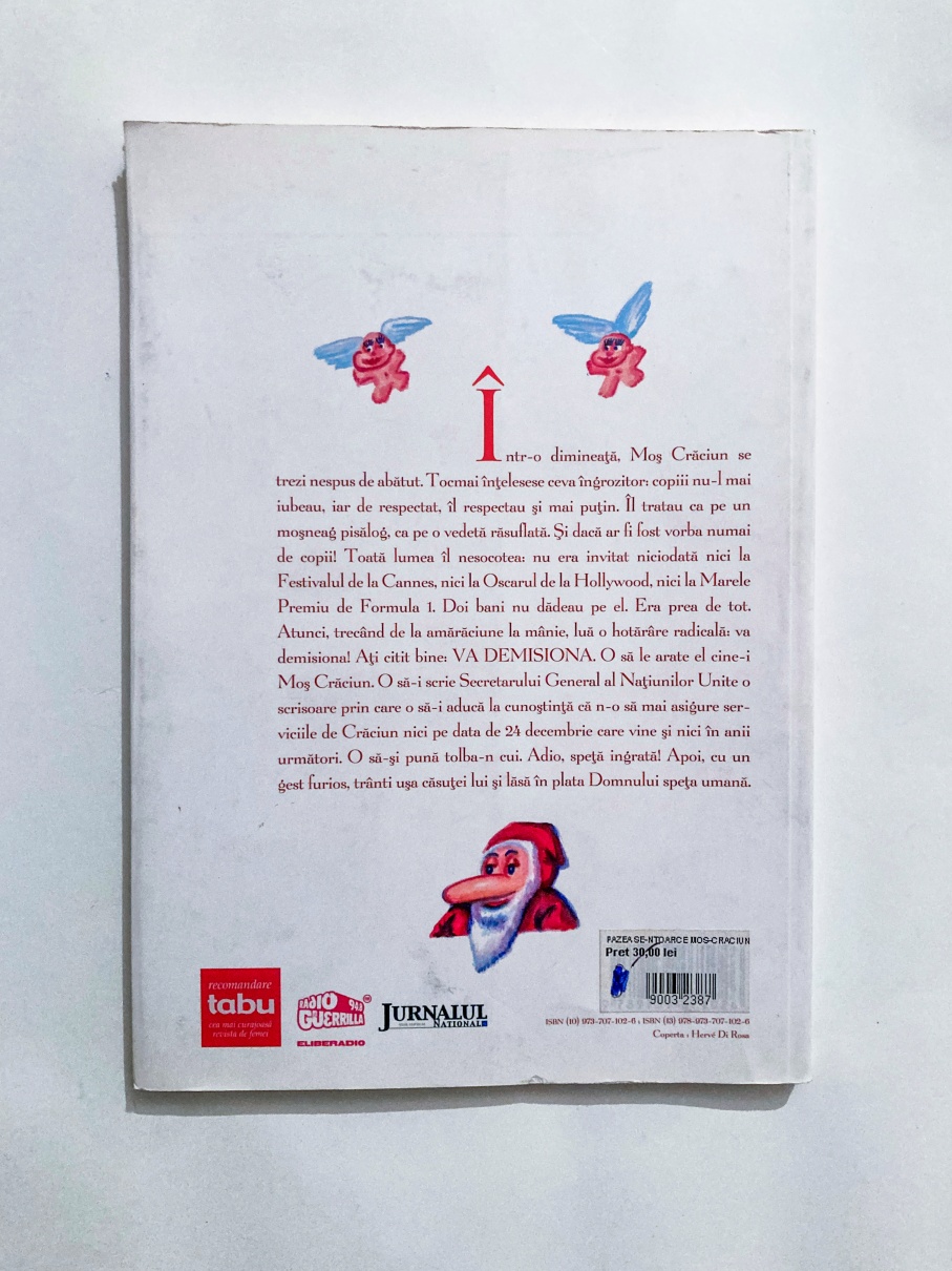 Într-o dimineață, Moș Crăciun se trezi nespus de abătut. Tocmai înțelesese ceva îngrozitor: copiii nu-l mai iubeau, iar de respectat, îl respectau și mai puțin. Îl tratau ca pe un moșneag pisălog, ca pe o vedetă răsuflată. Și dacă ar fi fost vorba numai de copii! Toată lumea îl nesocotea: nu era invitat niciodată nici la Festivalul de la Cannes, nici la Oscarul de la Hollywood, nici la Marele Premiu de Formula 1. Doi bani nu dădeau pe el. Era prea de tot.