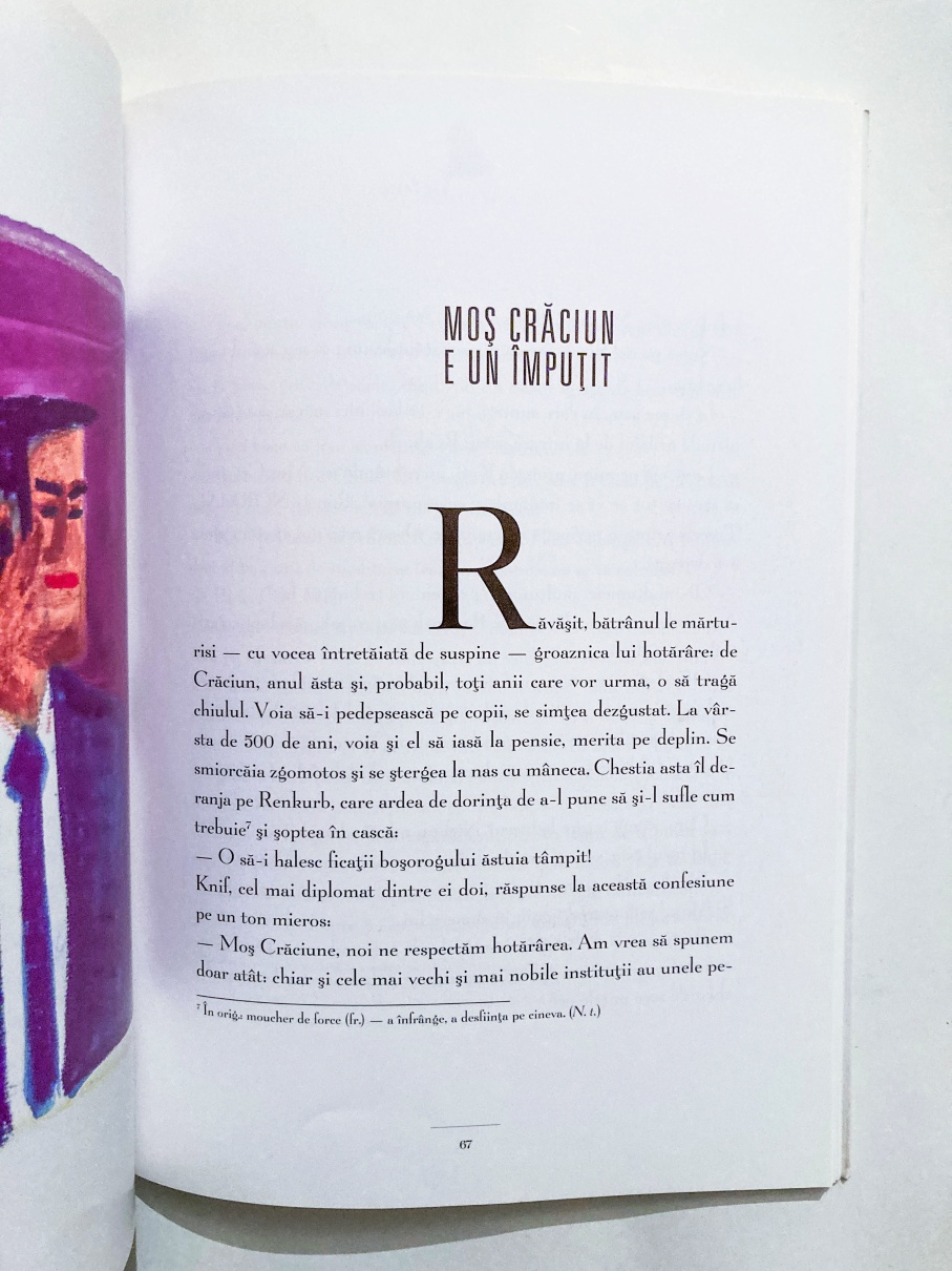 Atunci, trecând de la amărăciune la mânie, luă o hotărâre radicală: va demisiona! Ați citit bine: va demisiona. O să le arate el cine-i Moș Crăciun. O să-i scrie Secretarului General al Națiunilor Unite o scrisoare prin care o să-i aducă la cunoștință că n-o să mai asigure serviciile de Crăciun nici pe data de 24 decembrie care vine și nici în anii următori. O să-și pună tolba-n cui. Adio, speță ingrată!