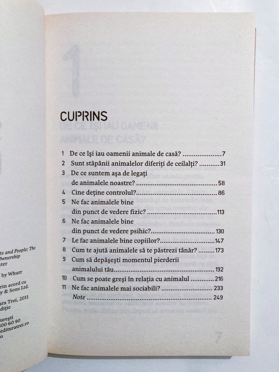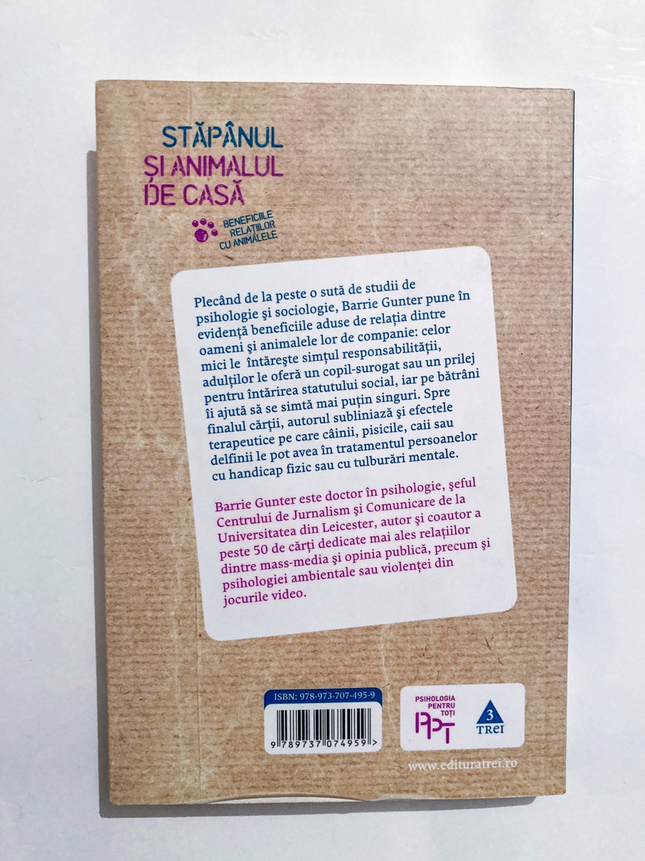 Plecând de la peste o sută de studii de psihologie și sociologie, Barrie Gunter pune în evidență beneficiile aduse de relația dintre oameni și animalele lor de companie: celor mici le întărește simțul responsabilității, adulților le oferă un copil-surogat sau un prilej pentru întărirea statutului social, iar pe bătrâni îi ajută să se simtă mai puțin singuri. Spre finalul cărții, autorul subliniază și efectele terapeutice pe care câinii, pisicile, caii sau delfinii le pot avea în tratamentul persoanelor cu handicap fizic sau cu tulburări mentale.